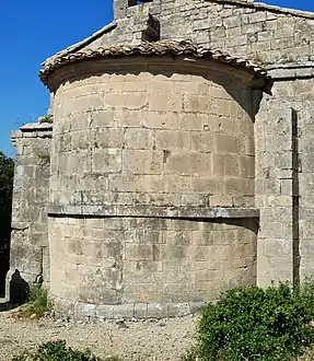 Le chevet est constitué d'une abside semi-circulaire unique bâtie en pierre de taille assemblée en grand appareil.