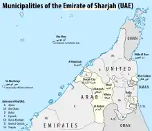 - (en) Cet article est partiellement ou en totalité issu de l’article de Wikipédia en anglais intitulé « Sharjah (emirate) » (voir la liste des auteurs).