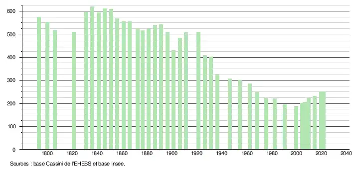 | Rang de la commune dans le département | 230 | 242 | 384 | 340 | 358 | 370 | 366 | 365 |
