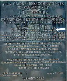 | Faits d'armes | Bataille de Revigny Combats de Vassincourt Bataille de la Marne |