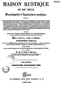 Maison rustique du XIXe siècle ou encyclopédie d'agriculture pratique contenant les meilleures méthodes de culture usitées particulièrement en France, en Angleterre, en Allemagne et en Flandre, terminée par des tables méthodique et alphabétique, par la liste des figures et celle des abréviations et ouvrages cités , Paris, 1835-1844. https://numelyo.bm-lyon.fr/f_view/BML:BML_00GOO0100137001100009252