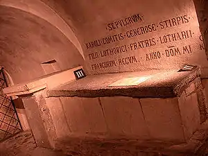 En 1666, la sépulture de Charles est retrouvée dans la basilique Saint-Servais à Maastricht aux Pays-Bas. Il semble que sa dépouille y ait été inhumée seulement en 1001[25], ce qui conduit certains auteurs à considérer qu'il est mort à cette date.