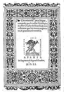 - Livre singulier & utile touchant l’art et practique de Géométrie, composé nouvellement en Françoys, par maistre Charles de Bouelles , 1542.