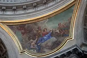 Les fresques de l’intérieur du dôme des Invalides furent son ouvrage capital. Il représente Saint Louis déposant sa couronne et son épée entre les maint de Jésus-Christ, assis au milieu d’une gloire et accompagné de la Vierge, et peint quatre pendentifs représentant les évangélistes avec leurs attributs et entourés d’anges (huile sur toile, Diam. 199 cm)[1]. Noël Cochin a gravé d’après lui ces peintures, en 22 planches. En 1771, Doyen restaura ces peintures fort endommagées par le temps.