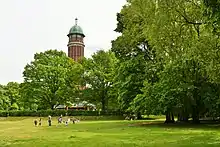 Au Moyen Âge, l'ancien domaine de Jungfernheide, un paysage etendu des forêts et des landes côtières, appartient au couvent des religieuses bénédectines (Jungfern, « vierges ») à Spandau. Après la Réforme protestante, ces terres faisaient partie des terrains de chasse des princes-électeurs de Brandebourg et, plus tard, des rois de Prusse. À partir de 1824, ils comprenaient une zone d'entraînement militaire de l'Armée prussienne. La gare proche de Jungfernheide a été ouverte en 1877. Le projet du jardin public (Volkspark) de Jungfernheide comme il se présente aujourd'hui fut élaboré déjà avant la Première Guerre mondiale ; toutefois, les travaux ne sont effectués qu'à partir de 1920, l'année à laquelle la ville indépendante de Charlottenbourg a été incorporée à Grand Berlin.