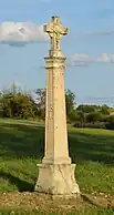 La Piéteuse, croix en pierre située sur le chemin du cimetière. Elle fut érigée en 1780 par Pierre Belval et Catherine Huguet son épouse en souvenir de leur fille décédée à 21 ans d'une épidémie de dyssentrie.