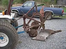 C'est l'avant-train d'attelage, une sorte de chariot, du latin impérial carruca, « char d'apparat »[6], qui est à l'origine du mot « charrue ». Il est cependant absent sur les charrues portées.