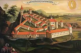 - Représentation de la Chartreuse de Žiče en 1730, l'original est à Klosterneuburg (Autriche).