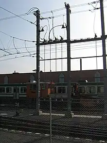 Le système est alimenté par une tension de 1 500 V à courant continu sur l'ensemble de la ligne sauf sur le tracé entre Lausanne-Chauderon et Montétan, partagé avec les Tramways Lausannois où la tension est de 650 V continu. Les éléments semiconducteurs n'existant pas encore dans les années 1930, c'est la société Brown Boveri et Cie qui fournira deux redresseurs à vapeur de mercure, d'une puissance de 350 kW chacun, pour fournir du courant continu à partir du réseau de distribution alternatif[A 18]. Quant aux automotrices, leur construction est assurée par la société des Ateliers du Sécheron et la fabrique suisse de wagons de Schlieren.