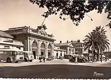 Autocars des CP, Renault 215D et R4190 devant la gare de Toulon dans les années 1950.