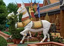 Deux représentations du cheval semblent particulièrement importantes pour les Khmer : le grand départ de Siddharta et son cheval Kanthaka, et Balāha[22].