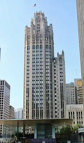 Achevée en 1925 et située au 435 Michigan Boulevard, la tour est devenue un des bâtiments les plus emblématiques de la ville avec son style néogothique comprenant sculptures de gargouilles et arcs-boutants qui rappellent le gothique flamboyant de la Cathédrale de Rouen. Sa hauteur est de 141 mètres et elle est protégée au titre des Chicago Landmarks par la ville de Chicago depuis le 1er février 1989.