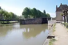 Les habitants de Montargis se distinguèrent particulièrement en 1427 contre les Anglais durant la guerre de Cent Ans. Les comtes de Warwick et Suffolk, commandant un corps d'armée, vinrent assiéger cette place[13]. Les habitants opposèrent une résistance courageuse ; ils rompirent les digues de plusieurs vastes étangs qui se trouvaient dans les environs et dominaient le camp anglais. Grand nombre d'ennemis furent noyés. La Hire et Dunois survinrent au milieu du désordre que l'irruption soudaine des eaux avait jeté parmi les Anglais, et en massacrèrent un grand nombre. Charles VII récompensa généreusement la ville où, selon sa propre expression, s'était trouvé le premier terme de son bonheur ; il lui accorda, en 1430, de grandes exemptions et des privilèges, avec le titre de Montargis-le-Franc[14]. La ville s'agrandit à cette époque de l'île d'Amadoux, qui s'élevait au milieu du Loing.