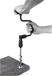 Il suffit d'appliquer la mèche sur le matériau à l'endroit désiré, d'appuyer sur la tête à l'autre extrémité de l'outil et de tourner la manivelle.