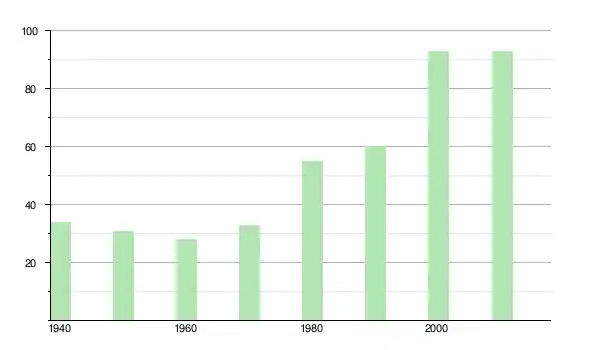 | 1950 | 31 | ▼ −8,82 % | |