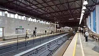La station en surface est installée dans un bâtiment couvert, elle dispose d'un accès au centre des voies avec accès à une mezzanine en relation avec les quais latéraux par des escaliers fixes[2].