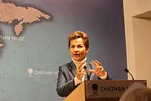 Elle a joué, en tant que responsable climat de l'ONU, un rôle clé dans l'accord de Paris en décembre 2015 (Cop21)[68].