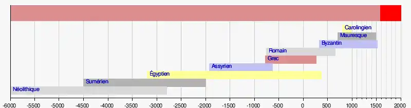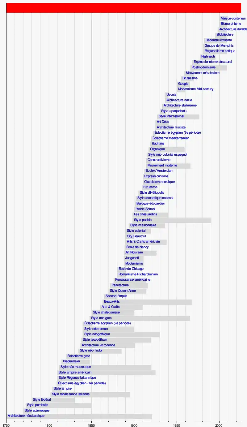 (en) Cet article est partiellement ou en totalité issu de l’article de Wikipédia en anglais intitulé « Timeline of architectural styles » (voir la liste des auteurs).