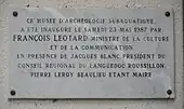 Plaque commémorative de l'inauguration du musée de l'Éphèbe