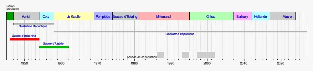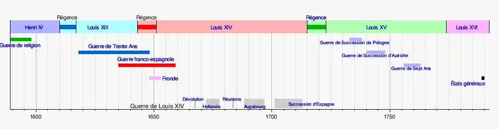Cette chronologie de la France a pour objet de proposer une chronologie synthétique et visuelle de l'histoire de France et l'histoire de ses gouvernements et d'y associer en entrées les principaux articles permettant une approche synthétique des périodes et évènements marquant son histoire, ainsi que celle de sa formation territoriale.