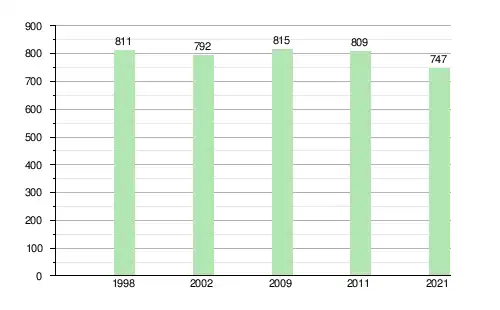En 2021, le village de Cieplice comptait 747 habitants, en diminution de −7,89 % par rapport à 1998[6]. En 2021, 58,5 % des habitants du village de Cieplice sont en âge de travailler (entre 18 et 64 ans pour les hommes et 18 et 59 ans pour les femmes). 19,4 % des habitants ont moins de 18 ans et 22,1 % ont l'âge légal de la retraite. Les personnes en âge de travailler représentent 58,3 % de la population de la voïvodie des Basses-Carpates et 52,4 % de la population de Pologne. Ainsi, le taux de dépendance démographique du village de Cieplice est équivalent à celui de la voïvodie des Basses-Carpates et inférieur à celui de la Pologne[7].