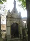 - la chapelle Fournier, dans la 28e division, 1re ligne, édifiée vers 1830 par l'architecte Pierre-Léonard Laurecisque (1797-1860), inscrite au titre des monuments historiques en 2013[16],