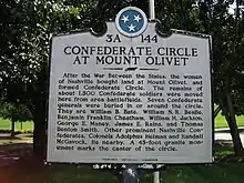Après la guerre de Sécession, « les dames du mémorial de la société de Nashville avec les vétérans confédérés survivants tels que William B. Bate, Daniel Carter, le général Benjamin Cheatham, et Thomas Harding ont acheté 26 588 pieds carrés dans le centre du Mount Olivet et créé le cercle confédéré » pour l'inhumation des morts confédérés. Il est utilisé pour l'inhumation de soldats confédérés qui sont morts sur les champs de bataille à proximité, et comme un hommage à leur sacrifice. Les femmes organisent de telles associations mémorielles et recueillent de l'argent pour l'inhumation de soldats confédérés dans les principales villes du sud et les zones où il y a des concentrations de corps[3]. L'association mémorielle organise des sépultures pour environ 1 500 soldats dans le cercle confédéré. Ils construisent également un obélisque.
