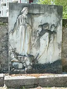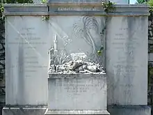 À proximité de la chapelle Saint-Roch, se trouve un monument dédié aux victimes de la guerre franco-prussienne de 1870. À l'initiative d'un avocat, maître Farge, le conseil municipal du 17 février 1874 décide de concéder gratuitement un terrain pour l'emplacement d'un monument aux morts[31]. Réalisé par le sculpteur grenoblois Eustache Bernard et inauguré le 5 novembre 1893, il représente une femme en deuil appuyée contre une haute pyramide, le bras accoudé sur la corniche du piédestal, la main gauche tenant une couronne d'immortelles. C'est l'Isère regardant à ses pieds une épée brisée.