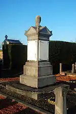 - le monument De Broux de Noirhat, large rectangle couvert de gravier, ceint d'une clôture de colonnes en pierre bleue et terminée par un petit mur orné de plaques en marbre blanc portant un grand crucifix ainsi que les noms d'une vingtaine de noms de membres de la famille De Broux de Noirhat ;