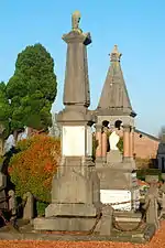 - le monument Demolder-Marchal, de style Renaissance, composé d'un socle en pierre bleue portant quatre colonnettes en granit rose sur lesquelles reposent des arcade cintrées d'où s'élance un toit en pierre en forme de pyramide terminé par un amortissement agrémenté de palmettes ;