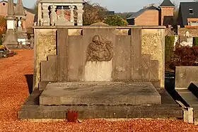 - le monument Pierre De Broux de Noirhat, monument géométrique en pierre bleue adossé au précédent, de style presque Art déco malgré la période tardive (1986);