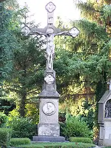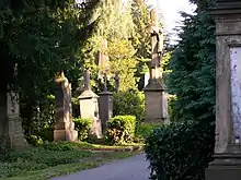 C'est auparavant, en 1803, que le cimetière de l'Est est inauguré le 18 août pour les habitants catholiques, sous l'administration des frères alexiens. Il se trouve à l'est de la tour du côté Nord de l'Adalbertsteinweg, voie ouverte à l'époque napoléonienne dans la direction de Kornelimünster[1].