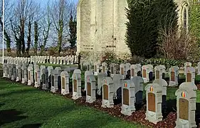 Pendant la guerre, des croix de héros étaient présentes (des heldenhuldezrkje en néerlandais), caractérisées par les lettres AVV-VVK (« Alles Voor Vlaanderen, Vlaanderen voor Kristus » mais pendant la nuit du 9 au 10 février 1918, au moins 38 de ces croix ont été dégradées, recouvertes par du ciment, et depuis cette date, seulement cinq de ces croix subsistent encore[2],[1],[3].