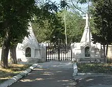 Le cimetière est entouré d'un mur d'enceinte en pierre de Crimée. Sur la hauteur envahie d'une végétation dense se trouve l'église Saint-Nicolas en forme pyramidale et surmontée d'une croix. Elle a été rendue au culte en 1989.