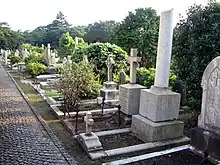Le cimetière d'Aoyama à Tokyo possède une section pour les étrangers. En 2005, son existence fut menacée par un projet de la municipalité qui désirait faire un parc à la place et les autorités affichèrent des avertissements (Kanpo) sur les tombes dont la famille du défunt n'avait pas payé les taxes demandées. Ces avertissements expiraient fin septembre 2005 après quoi les tombes devaient être déplacées ailleurs.
