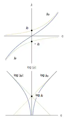 Cette équation donne une densité de courant négative pour une réaction de réduction (surtension négative) et une densité de courant positive pour une réaction d'oxydation (surtension positive), le signe de la densité de courant n'a pas de sens physique et est défini par une convention internationale.