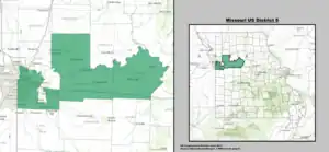 Le 5e district congressionnel du Missouri est représenté à la Chambre des représentants des États-Unis par le Démocrate Emanuel Cleaver, ancien maire de Kansas City, depuis 2005.