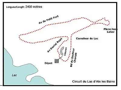 Le circuit du lac d'Aix les Bains était tracé au bord du lac d’Aix-les-Bains. Long de 2 400 mètres, il se situait autour de l’endroit où se trouve actuellement le carrefour du Lac[1].