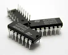Le circuit intégré (CI), aussi appelé puce électronique, est un composant électronique, basé sur un semi-conducteur, reproduisant une ou plusieurs fonctions électroniques plus ou moins complexes, intégrant souvent plusieurs types de composants électroniques de base dans un volume réduit (sur une petite plaque), rendant le circuit facile à mettre en œuvre[1].