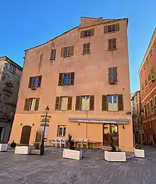 Il est situé Place du Donjon, anciennement appelée Piazza di Corte.