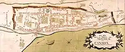 ![]() La citadelle est représentée dans ce plan de Montréal en 1749 : à l'intérieur des murs, le long rectangle en relief dans le coin Nord-Est. |