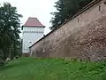 Dans la partie sud-ouest de la cour se trouve la plus ancienne église de la ville, l'église fortifiée, qui date du XIVe siècle.