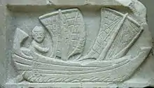 Cette technique confirme ce que disent les textes, notamment ceux d'Appien[55]. Le navire, qualifié de chiourme, possédait un éperon destiné à frapper les bateaux ennemis[56].