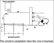 Le courant passe dans un fil métallique sans enveloppe isolante mais éloigné du sol (la masse électrique dans le système) grâce à des piquets isolés électriquement de ce fil. Le moindre contact d'un animal avec le câble permet au courant électrique d'être en contact avec la terre via le corps de l'animal (sauf cas de l'oiseau ou d'un insecte se posant sur le fil). Cela lui administre une décharge électrique désagréable qui le force à cesser le contact.
