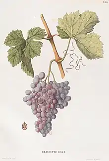 |   Illustration de la clairette rose dans l'Ampélographie de Viala et Vermorel. | |