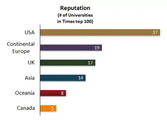Le journal britannique The Times publie depuis 2004 le Times Higher Education World University Rankings dans le mensuel dédié Times Higher Education. Les critères s'intéressent à l'enseignement et la recherche et mêlent des données objectives (notamment bibliométriques) et des éléments subjectifs liés à la réputation de l'établissement.