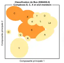 L'usage actuel le plus courant est de distinguer trois complexes S, C et X et de regrouper sous le terme de end members (~ membres extrémaux) toutes les petites classes situées en bordure de ces complexes (dans l'espace des données spectrales). Cette terminologie a été introduite en 1999 par Schelte J. Bus mais lui-même distinguait end members et outliers (~ en marge)[1], ce qui conduit à une présentation un peu différente. La notion de complexe n'est pas présente dans la classification de Tholen mais les rapprochements clairs entre types E, M, P d'une part (groupe X de Tholen) et B, C, F, G d'autre part (groupe C introduit par la suite) sont pleinement cohérents avec elle.