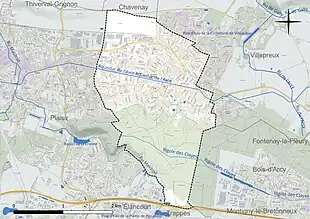 Elle est limitrophe de Chavenay au nord, de Villepreux au nord-est, de Bois-d'Arcy à l'est sud-est, de Trappes au sud, sur environ 700 mètres, et de Plaisir à l'ouest sud-ouest.