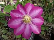 'Asao' a été obtenue par le croisement de clématite patens 'Ernest Markham' et de clématite patens Star of India'.