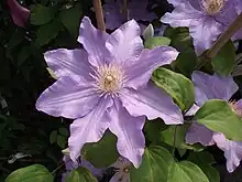 Les feuilles caduques de cette clématite sont parfois simples, parfois alternes et trifoliées. en moyenne elles mesurent 10 cm[1]